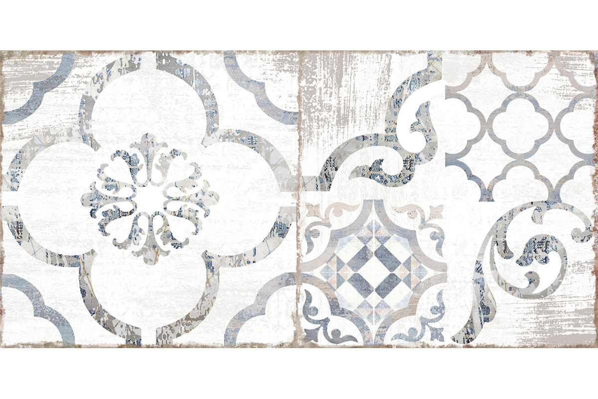 Декоративная плитка Alma Ceramica DWU09RVL014 Rivoli 50x24.9 серая / кремовая глянцевая под камень / с орнаментом