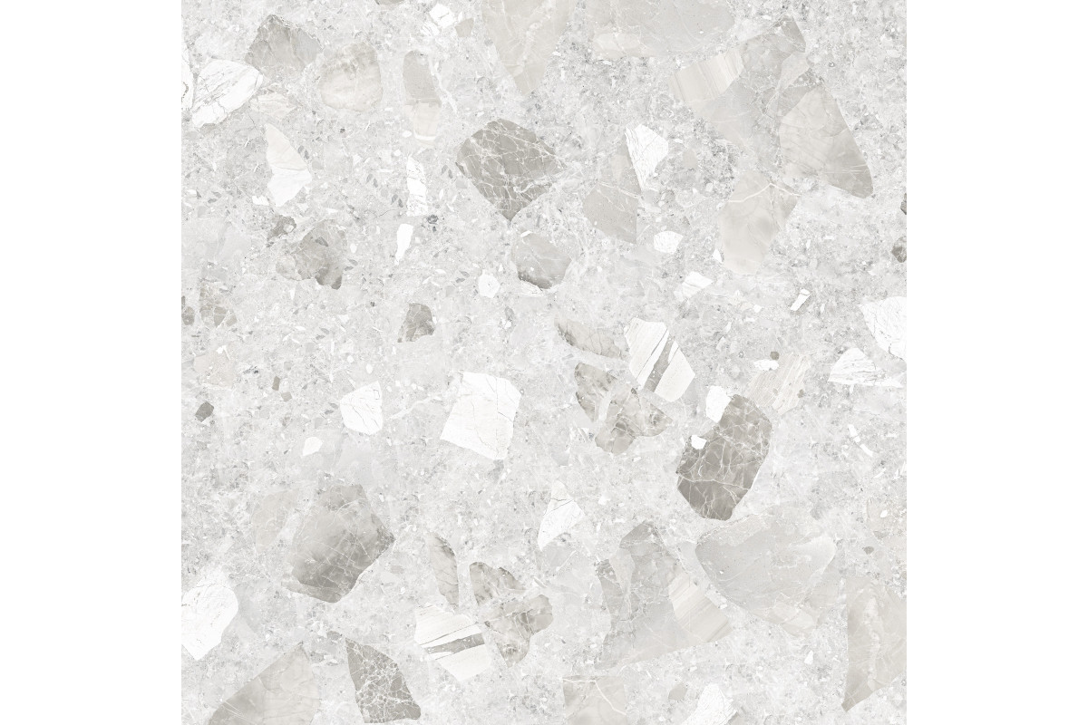 Керамогранит Alma Ceramica GFU04STE07R Steel rock 60x60 белый сахарный под терраццо воплощает в себе элегантность и функциональность. Белоснежный фон с насыщенными прожилками делает интерьер светлее и придаёт ему премиальный характер. Материал характеризуется низким водопоглощением и устойчивостью к бытовой химии, что обеспечивает долговечность и лёгкость в уходе. Эффект натурального камня позволяет легко сочетать плитку с деревом, металлом и текстилем. Этот керамогранит можно использовать для стен и пола в жилых и общественных помещениях, создавая атмосферу гармонии и уюта. Такой керамогранит органично вписывается в интерьеры в стиле минимализм, модерн и неоклассика. Крупный формат 600x1200 мм уменьшает количество швов, делая покрытие цельным и современным. Покрытие зрительно расширяет пространство, делая даже небольшие комнаты светлее и просторнее.