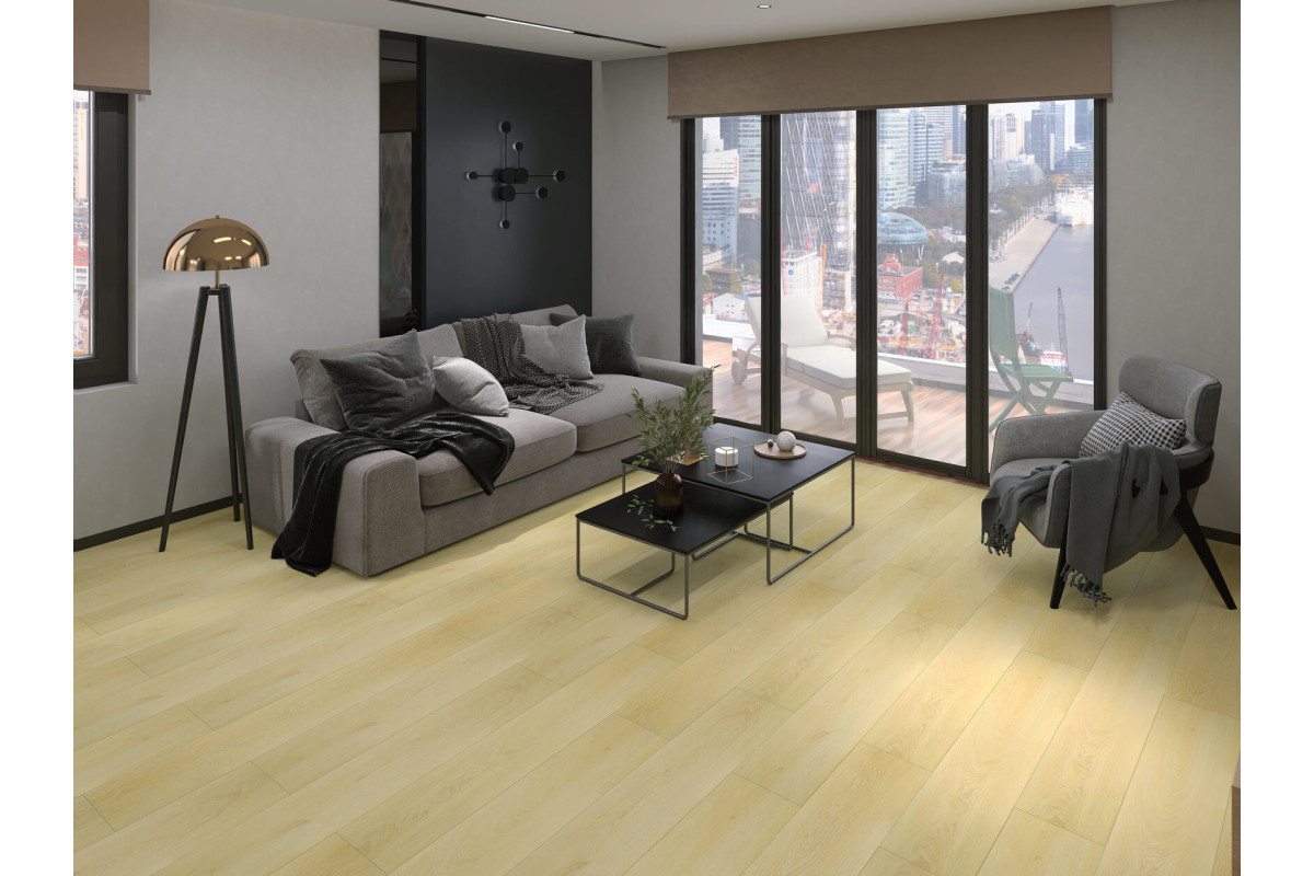 Floorwood Quantum — коллекция винилового ламината на основе SPC (каменно-полимерный композит состоит на 70-80% из перемолотого известняка и ПВХ, смешанных при высокой температуре. Не боится воды, не реагирует на перепады температур. За счет высокой плотности материала, сопоставимой с камнем, отличается безупречной прочностью замков. Поскольку в составе нет клея и смол, материал абсолютно безопасен для человека. Каменно-полимерный ламинат Floorwood Quantum со встроенной подложкой 43 класса можно использовать в домашних, коммерческих или промышленных помещениях. Возможно использование в ванных комнатах с герметизацией зазоров по периметру помещения, чтобы вода не затекала под напольное покрытие.